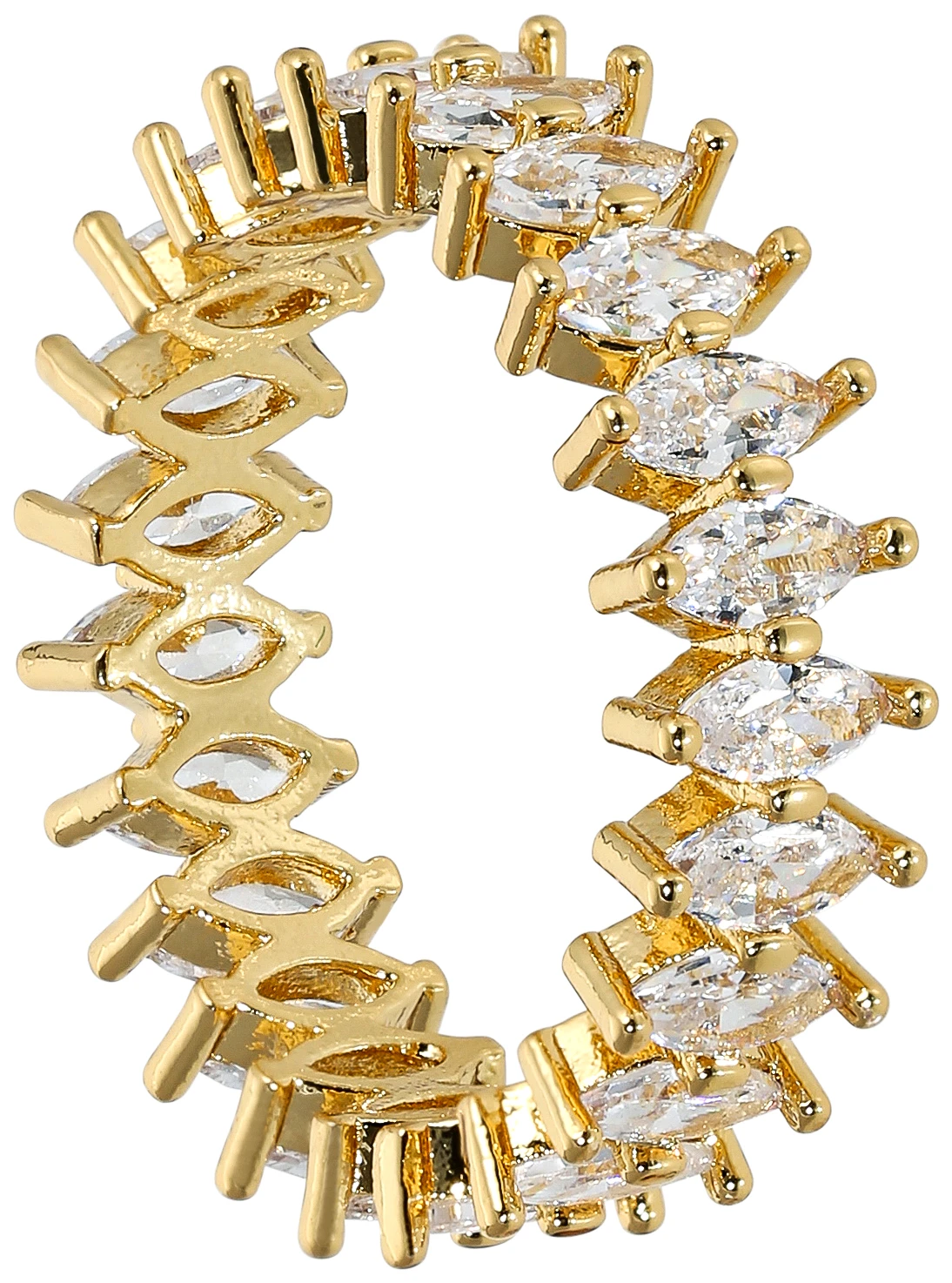 Der Ring – Royal Sparkle glänzt goldfarben und ist mit Cubic Zirkonia Steinen verziert. Die Cubic Zirkonia Steine sind in der Navette Schliffform. Jetzt entdecken bei Bijou Brigitte!
