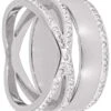 Das Ring-Set – Gold White besteht aus zwei goldfarbenen Edelstahlringen mit unterschiedlichen Designs. Der eine Ring ist klassisch gehalten und der andere Ring ist mit zwei weiĂźen Reihen aus Emaille verziert.