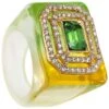 Das Ring-Set – Lovely Spring besteht aus zwei goldfarbenen Ringen. Einer ist mit einem pinken Harzstein und vielen kleinen orangenen Steinen verziert. Der andere ist mit einem grĂĽnen Harzstein und kleinen lila Steinen beschmĂĽckt. Jetzt entdecken in der LOOKS by Wolfgang Joop Kollektion von Bijou Brigitte!