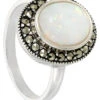 Der Ring – Sparkling Blush schimmert goldfarben und besteht aus 925er Echtsilber. Die Cubic Zirkonia Steine in der Mitte des Rings sind durchsichtig und rosafarben und haben eine ovale Form.