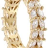 Der Ring – Zirkonia Leaves schimmert silberfarben und ist mit blattförmigen Cubic Zirkonia Steinen verziert. Der Tennisring lĂ€sst sich toll mit einer Tenniskette und einem Tennisarmband kombinieren.