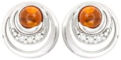Das Schmuckset – Shiny Amber ist silberfarben und besteht aus 925er Echtsilber. Der Anhänger der Kette und die Ohrstecker sind mit einem runden Bernstein und mit Cubic Zirkonia Steinen verziert.