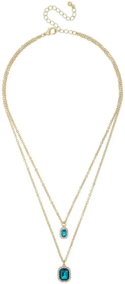 Das Set – Blue Eyecatcher schimmert goldfarben und besteht aus einer Layering Kette und einem passenden Paar Ohrringen. Das Set ist mit Strasssteinen in unterschiedlichen Formen und Farben verziert. Die Strasssteine sind teilweise blau.